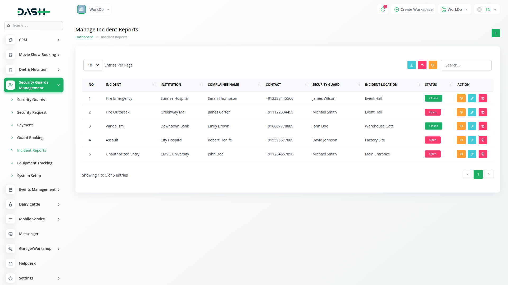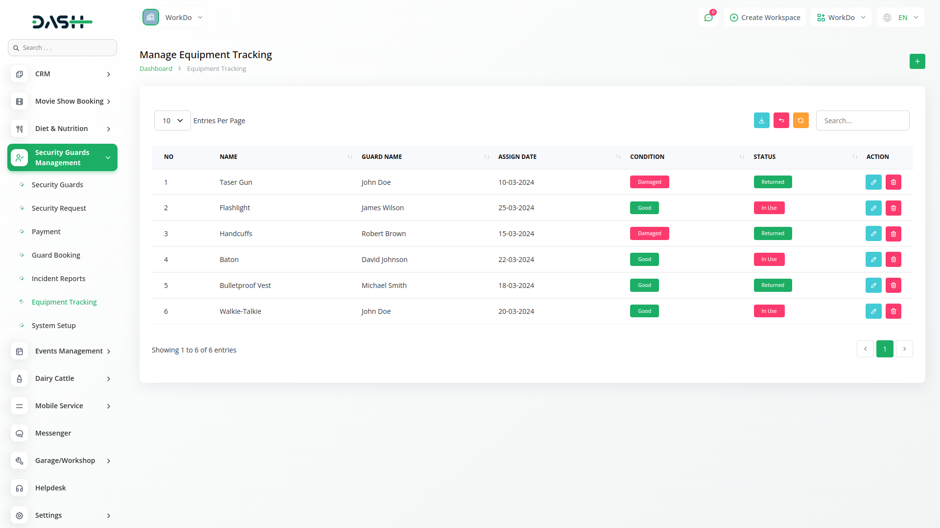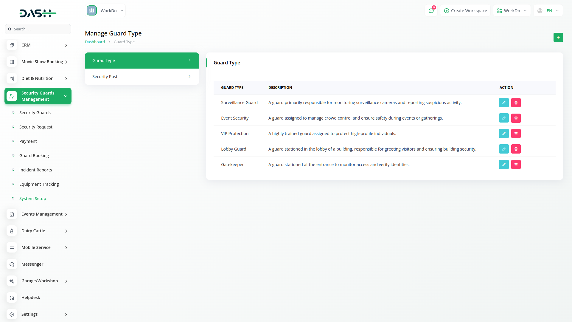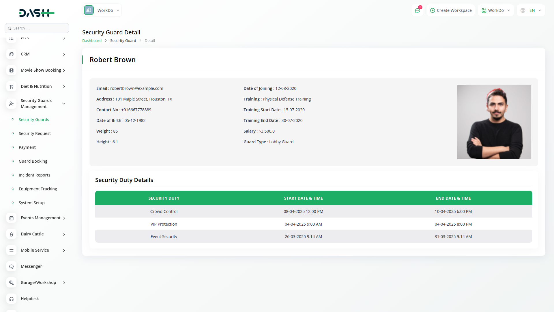The Security Guard Management Add-On in Dash SaaS helps security firms efficiently manage guards, shifts, posts, and service requests. It streamlines guard profiles, training, duty scheduling, incident reporting, and equipment tracking while ensuring smooth payment processing and transparent operations.