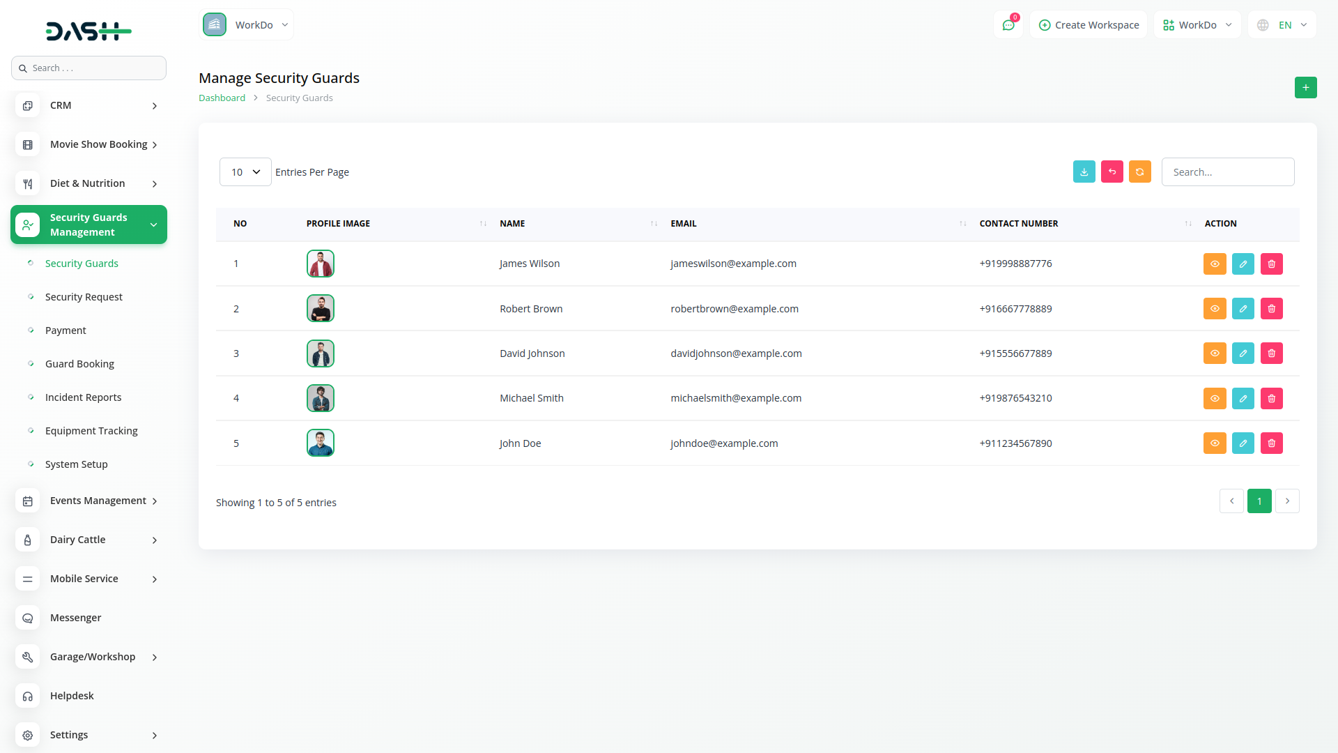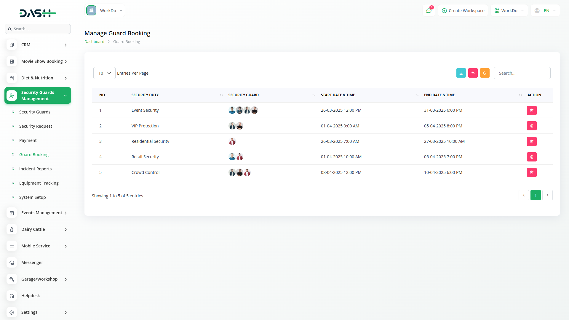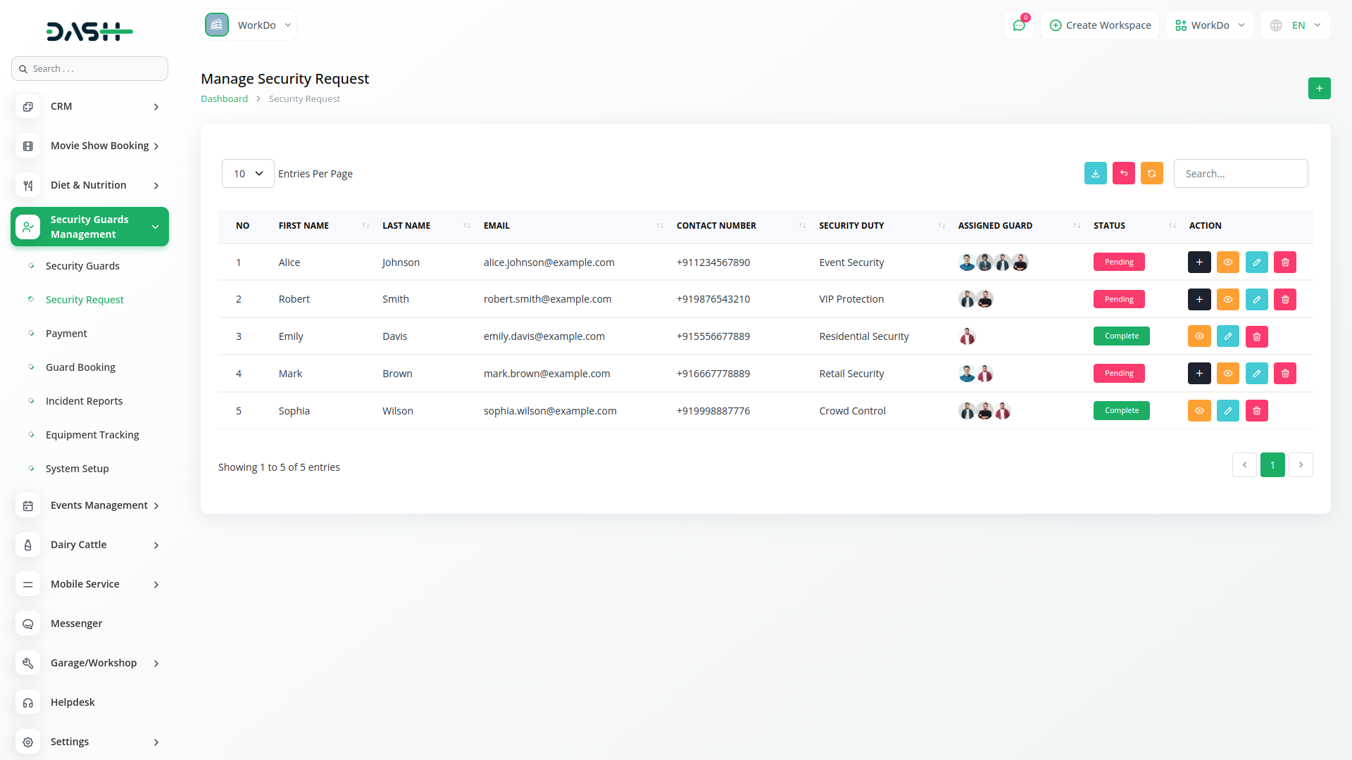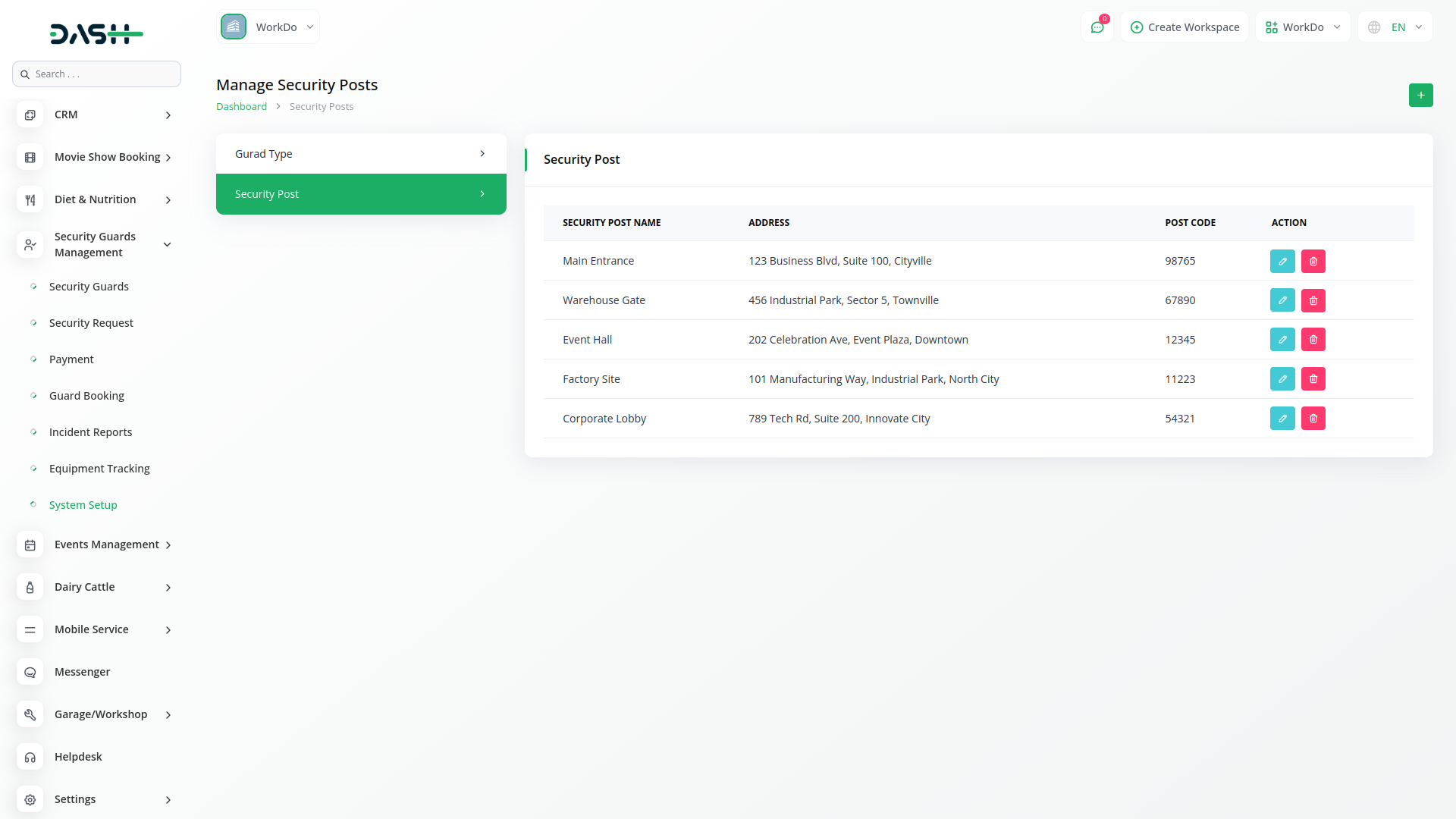 The Security Guard Management Add-On in Dash SaaS helps security firms efficiently manage guards, shifts, posts, and service requests. It streamlines guard profiles, training, duty scheduling, incident reporting, and equipment tracking while ensuring smooth payment processing and transparent operations.