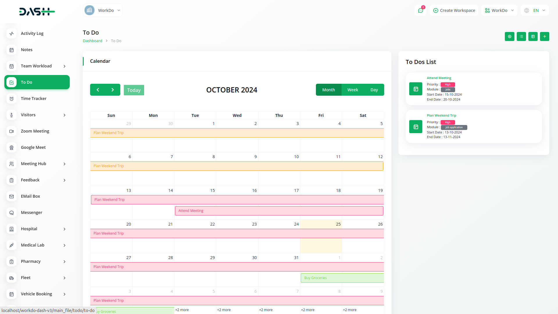 Visualize your tasks and appointments with the calendar view feature in Dash SaaS's ToDo module. Plan your schedule effectively by seeing tasks alongside meetings and deadlines in a comprehensive calendar layout. With this intuitive visualization tool, manage your time efficiently and prioritize tasks based on their due dates and importance. Stay organized and on top of your commitments with Dash SaaS's seamless integration of task management and scheduling capabilities.